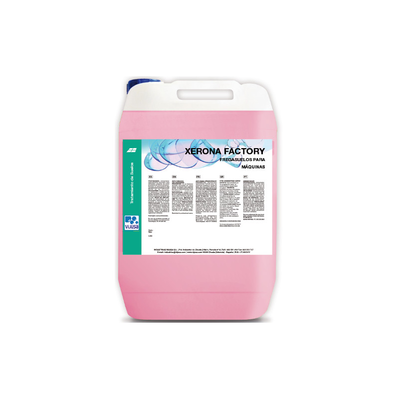 XERONA FACTORY es un fregasuelos de baja espuma, especialmente formulado para su uso mediante máquinas fregadoras de inyección-extracción. Deja las superficies perfectamente limpias a la vez que agradablemente perfumadas.