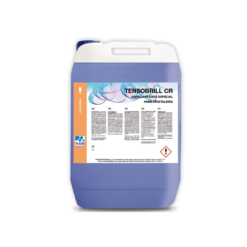 Producto abrillantador destinado al lavado especifico de cristalería para aguas hasta 40º HF. Gracias a su composición actúa disminuyendo la tensión superficial del agua de aclarado, facilitando la evaporación, logrando un secado rápido y un acabado brillante, a la vez que quedan neutralizados los posibles restos de detergente en la vajilla.